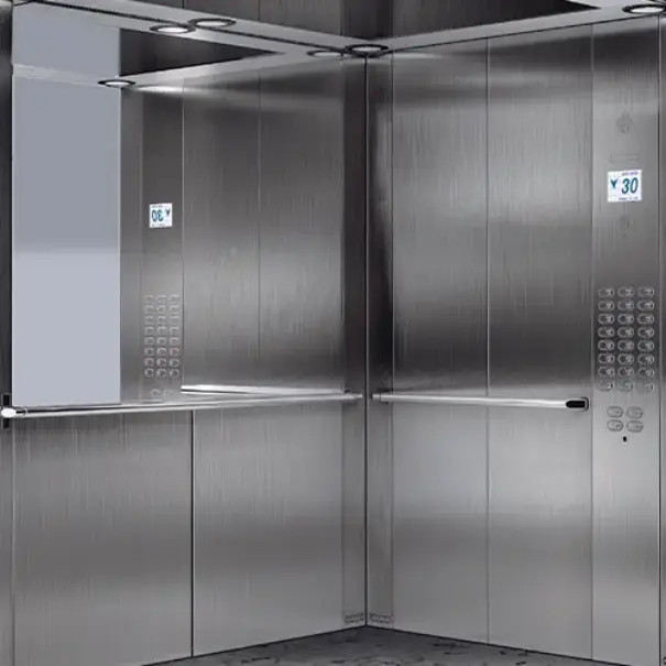 Além do padrão tradicional de cabinas em aço inoxidável, os painéis que revestem a cabina do elevador podem ser de vidro ou laminado com opções de cores e texturas. O inox também está renovado a partir de três modelos desenhados que agregam beleza e sofisticação aos projetos