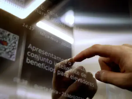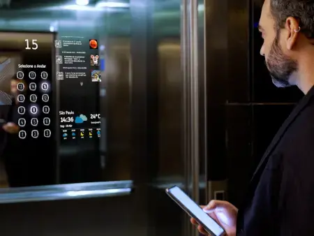 A partir de um display de alta resolução, com até 55” e sensível ao toque, o AGILE Mirror transforma as viagens de elevador em uma experiência surpreendente.