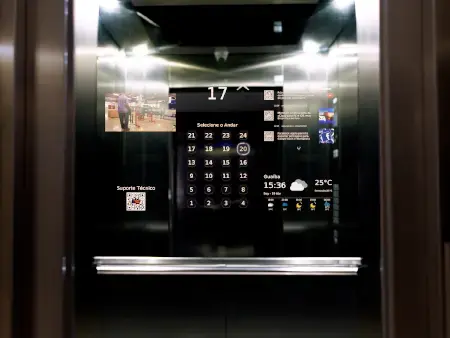 Vá além dos anúncios. Com o AGILE Mirror é possível selecionar o andar de destino, conferir notícias, acompanhar a previsão do tempo e interagir com o elevador durante a viagem, tudo isso com a nitidez da tela LED que reproduz mais de 1 bilhão de cores.