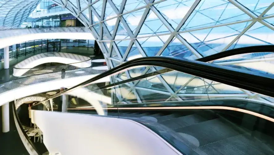 Mit seinen Ersatzanlagen für Fahrtreppen und Fahrsteige setzt TK Elevator Branchenstandards, weil der bauliche Aufwand für Einbringung und Montage minimal ausfällt.