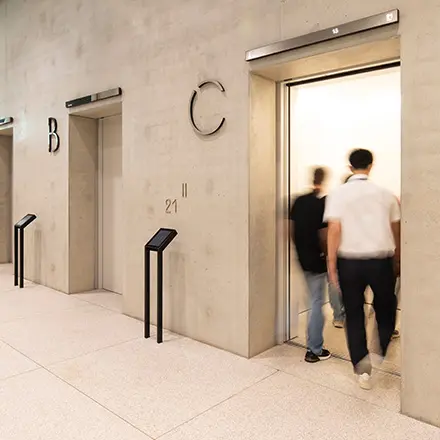 To blend your elevator system with your building’s architectural design, we offer a high degree of configuration flexibility to resolve complex challenges and deliver highly customised solutions. Customisable cabin shapes and dimensions include extra-wide and extra-high doors as well as an optimised shaft efficiency and machine room layout.