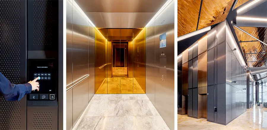 From the lobby to the top floor, the design of modern high-rise buildings is a composition of ambiances. Elevators can connect these different atmospheres fluidly, not just by facilitating the actual travel, but also by their own design. Modern material technology imposes very few limits on achieving the desired look & feel every architect and interior design expert strives for. That's why HELIX allows for design customisations, and is especially suited for heavyweight cabin decorations. Whether it's marble floors or complex ceilings, we are ready to support in realising your team's design concept.