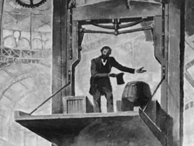It was there that Elisha Graves Otis unveiled his safety brake in dramatic fashion. His platform elevator would rise to a height of 10 meters, and his assistant would then cut the elevator rope. When the platform didn’t crash to the ground, he would bow to the amazed crowd, and announce, “All safe!”