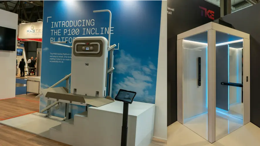 TK Elevator also unveiled their newest P100 Incline Platform Lift, a space-saving solution suitable for both residential and commercial use. Lightweight, battery-powered, and easy to install, the P100 features a single body that fits both left- and right-hand units, providing safe and effortless accessibility for all.