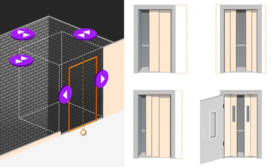 La maggior parte degli ascensori negli edifici prevede la presenza di un passaggio livellato su tutti i piani. Si tratta di una superficie piana su cui camminare, o spingere un passeggino o una sedia a rotelle. In un edificio originariamente costruito senza ascensore questo passaggio fondamentale deve essere creato a posteriori, sui piani verticali e orizzontali. Anche l’ascensore deve andare su e giù in qualche modo e i passeggeri hanno bisogno di spazio per accedere alla cabina. EOX Renew spalanca letteralmente le porte a tutte le possibilità, perché consente di configurare tre entrate, invece delle due consuete: può essere dotato di un’entrata singola per accedere alla cabina, un’entrata doppia con due porte, una opposta all’altra e persino una doppia entrata “dietro l’angolo”, con porte posizionate a 90° l’una rispetto all’altra.