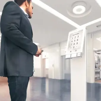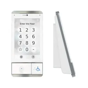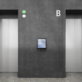 Passengers use the kiosk to select their floor. You can add custom button labels and logos to make the process even easier.