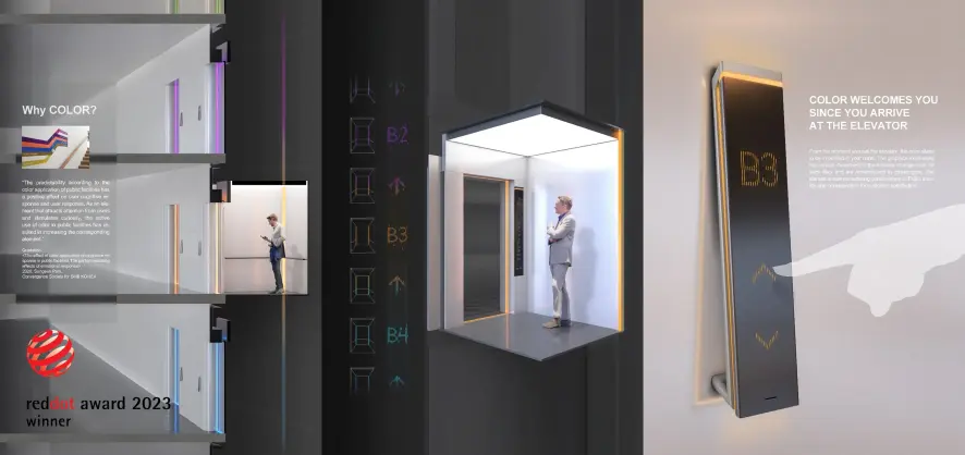 수상작인 ‘컬러 인덱스 시스템(Color Index System)’은 지하 주차장 엘리베이터에 층마다 다른 색상을 적용, 승객이 해당 층의 색상을 자연스럽게 기억할 수 있도록 유도한 시스템이다.