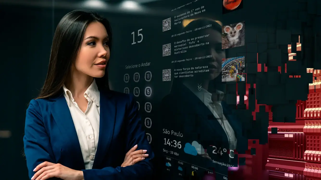 Vaya más allá de los anuncios. Con AGILE Mirror es posible seleccionar el piso de destino, consultar noticias, seguir la previsión meteorológica e interactuar con el ascensor durante el viaje, todo con la nitidez de la pantalla LED que reproduce más de mil millones de colores.