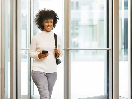 De betrouwbare automatische deuren van TK Elevator bieden ongehinderde doorgang van de ene ruimte naar de andere. Contactloos, comfortabel en hygiënisch.