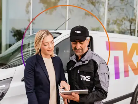 Onze servicetechnici zijn continu onderweg met hun voertuigen, voorzien van een voorraad veel gebruikte reserveonderdelen, afgestemd op hun onderhoudsportefeuille. Volledig digitaal voorzien van slimme apparaten en onze eigen applicaties zijn ze continu verbonden met ons dispatchteam, ons unieke ondersteunende ITS-netwerk en het slimme onderhoud van TKE via de MAX-cloud. Met TK Elevator als uw vertrouwde servicepartner heeft u altijd één aanspreekpunt in uw regio. Hier is bekend wat er met uw lift of roltrap aan de hand is en krijgt u persoonlijke assistentie.