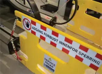 hht. standard EN115 - 7.2.1.2.3 under service, reparasjon, inspeksjon og lignende arbeid skal tilgang til rulletrapp eller rullende fortau være avstengt med sperremateriell for uautoriserte personer.