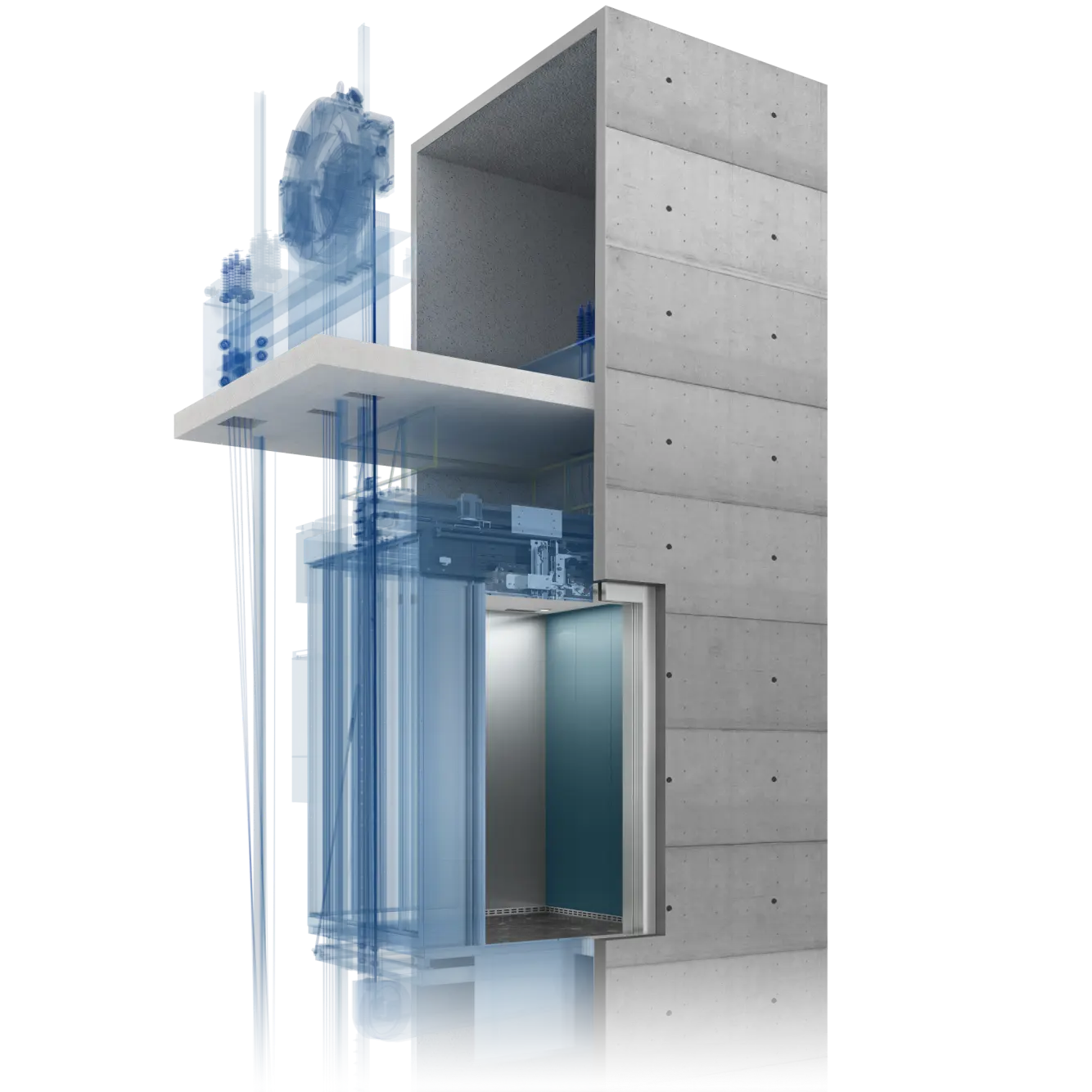 تسمح الماكينة صغيرة الحجم ببئر مصعد صغير وتزيد المساحة القابلة للتأجير.